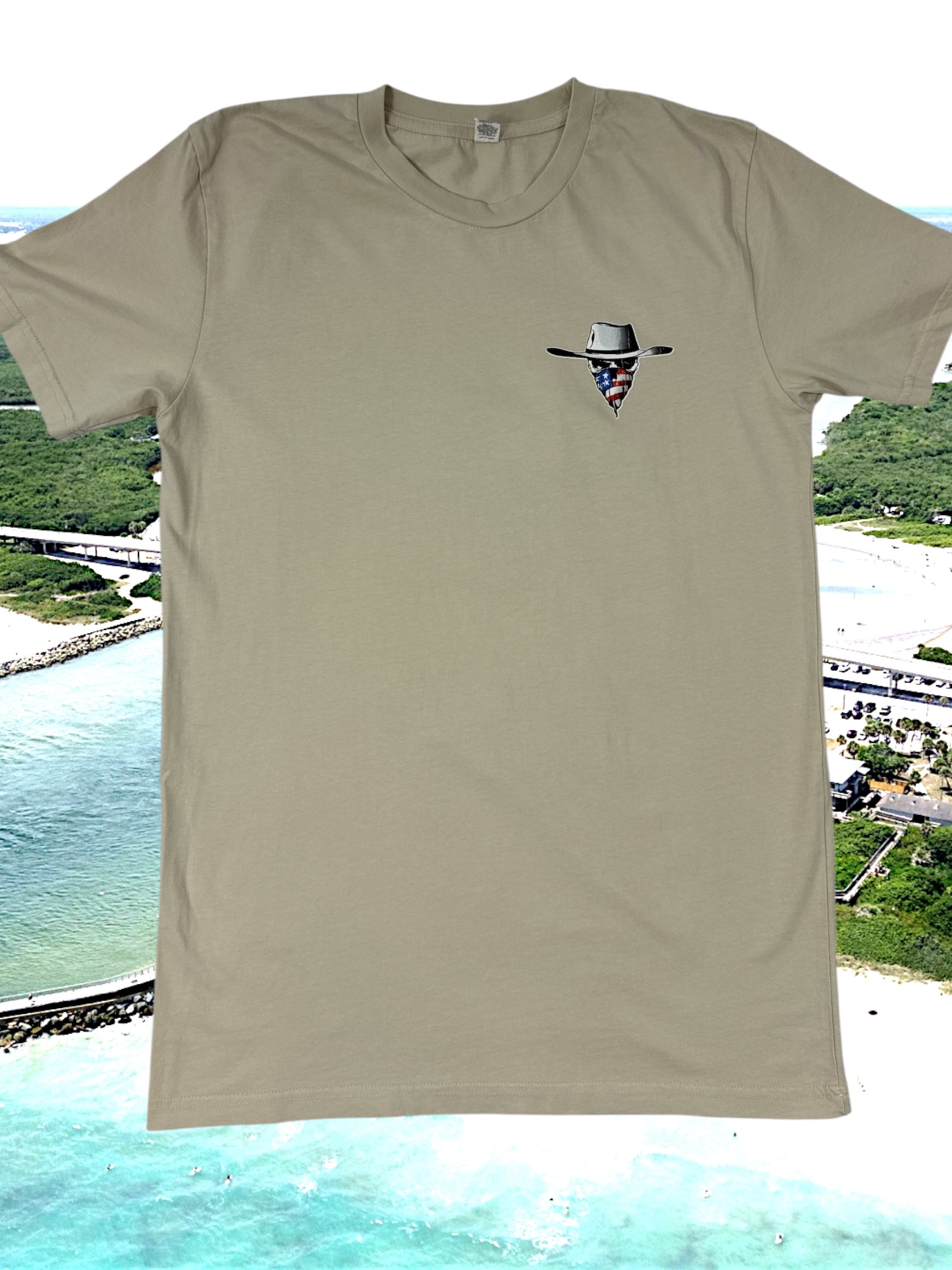 Embrace the coastal cowboy lifestyle with the Saltwater Cowboy Tee. This short-sleeved t-shirt showcases a unique design on the back, featuring the Saltwater Cowboy logo and a patriotic bandana. The front features a smaller version of the logo, creating a distinctive and eye-catching look. A perfect tee to rep your love for the Saltwater Cowboy, and Floridana Beach, FL.